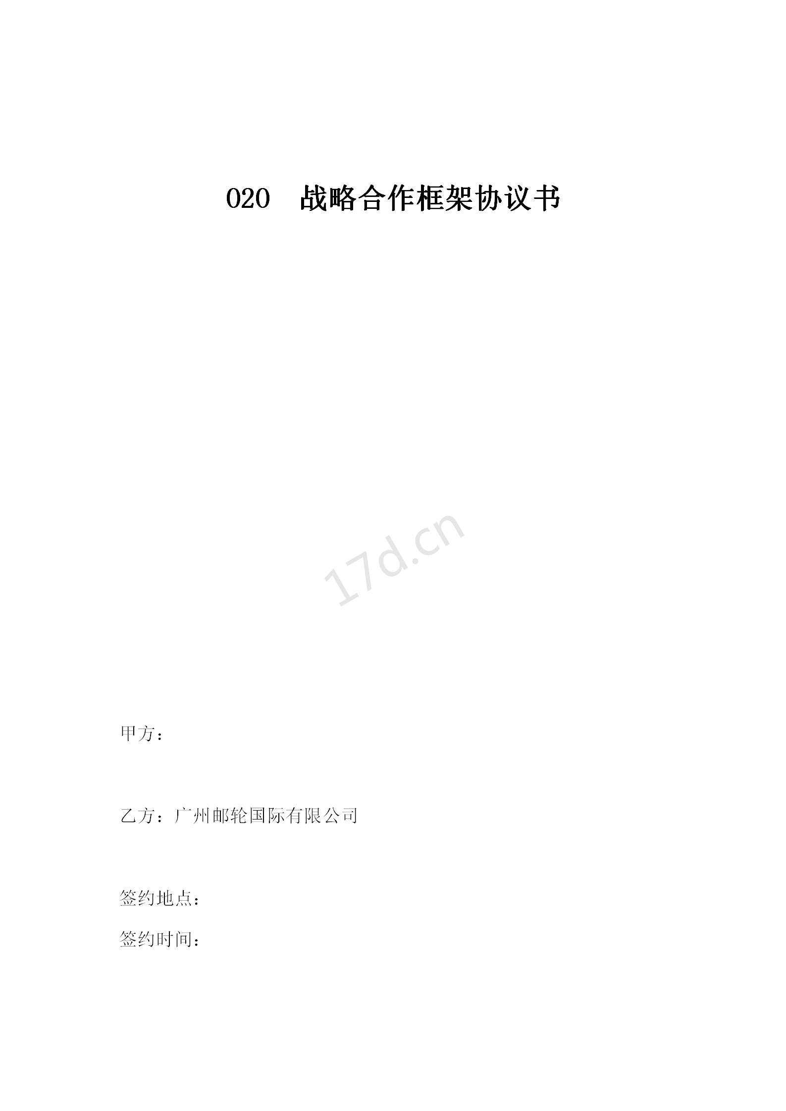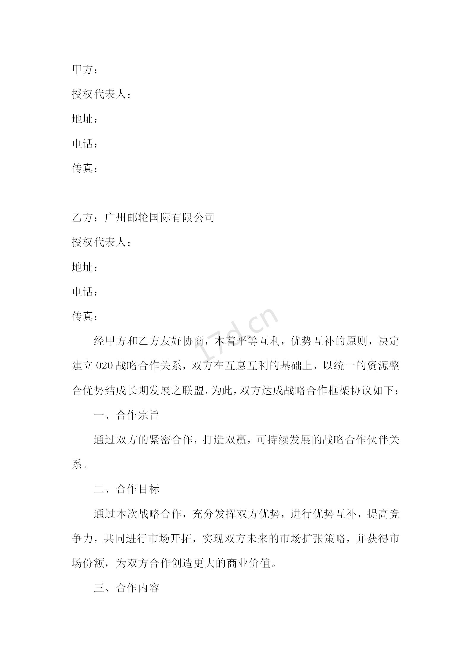 O2O战略合作框架协议书