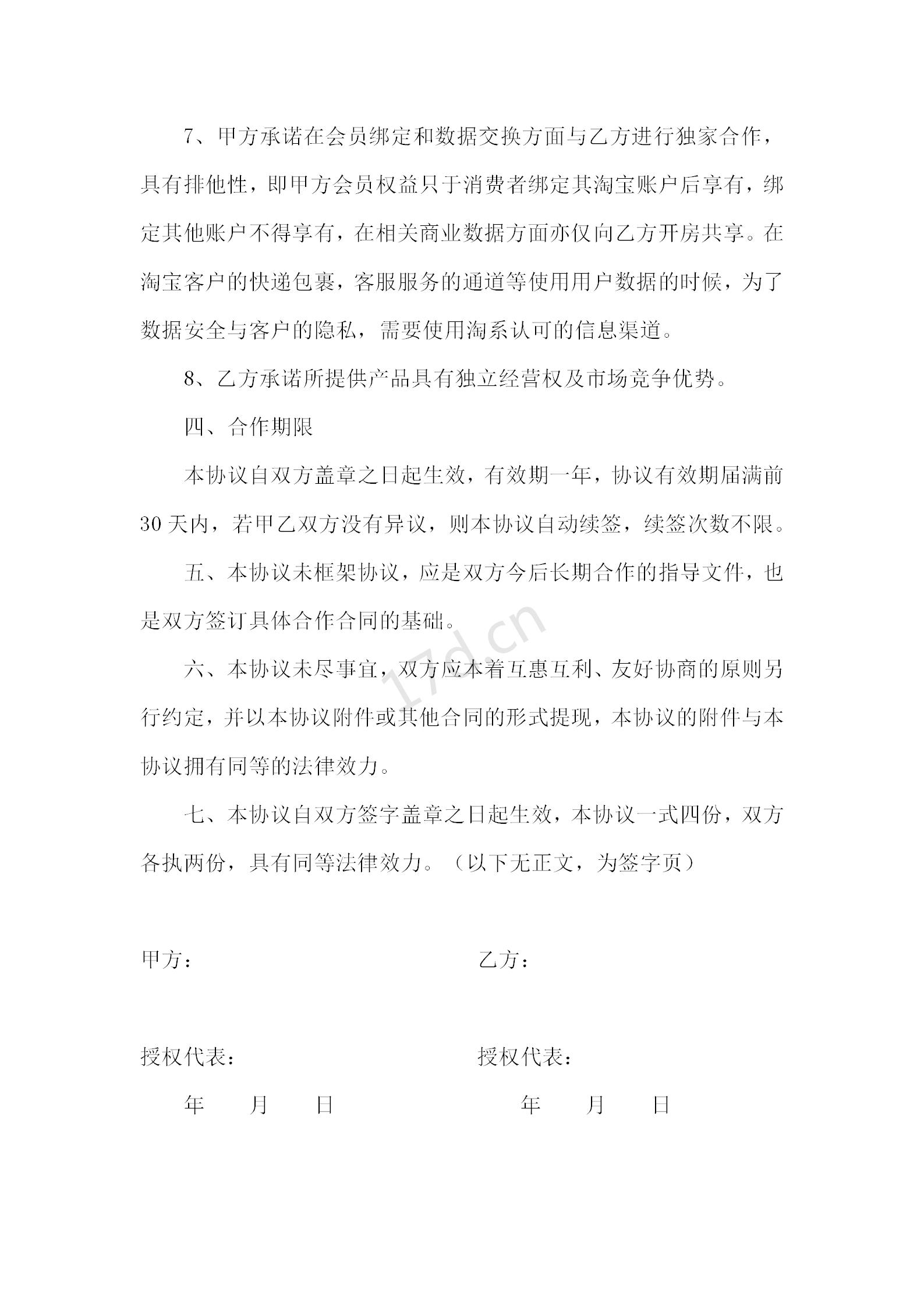 电子商务运营合作协议