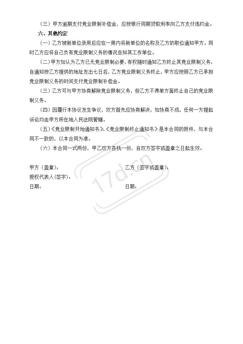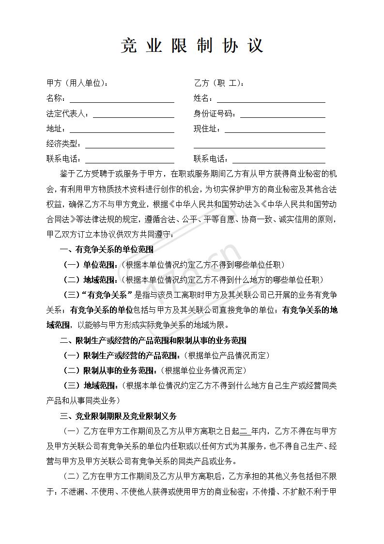 竞 业 限 制 协 议